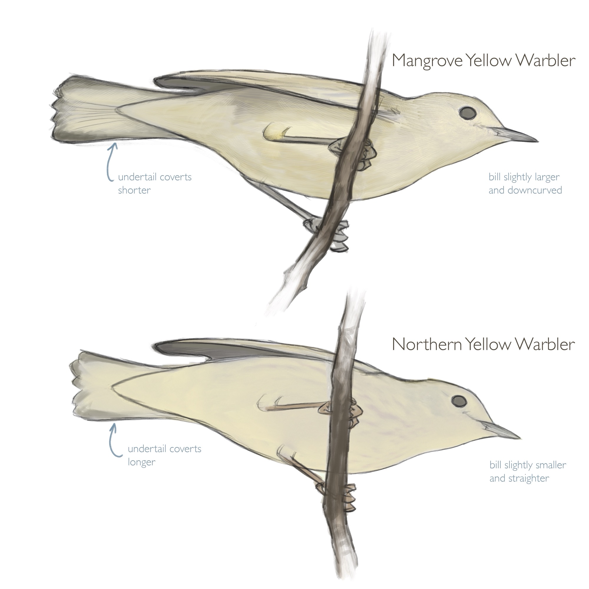 There are a few records of vagrant Mangrove Yellow Warblers hundreds of miles from their normal range, and the potential for range expansion, so it is worthwhile to keep an open mind to the possibility of out-of-range Mangrove Yellow Warblers.